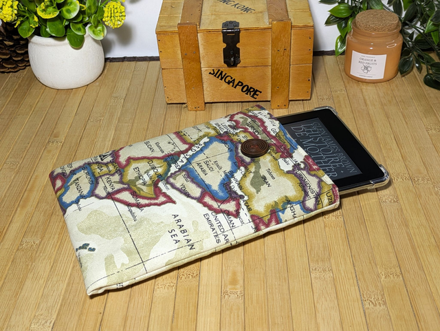 Pochette en tissu pour protéger vos livres de poche ou votre petite liseuse. La pochette est rembourrée avec de la ouatine pour plus de protection.