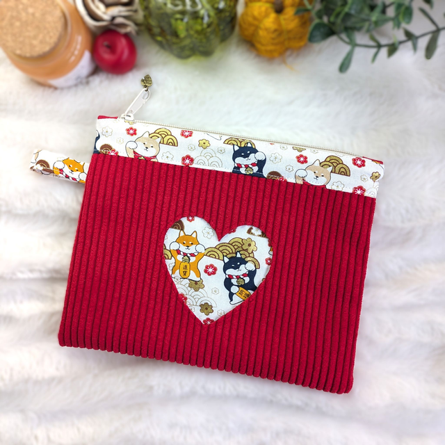 Voici une trousse plate toute mignonne avec son petit cœur en tissu. Elle est parfaite pour y ranger du maquillage, des crayons ou encore des papiers importants pour les avoir toujours avec soi.